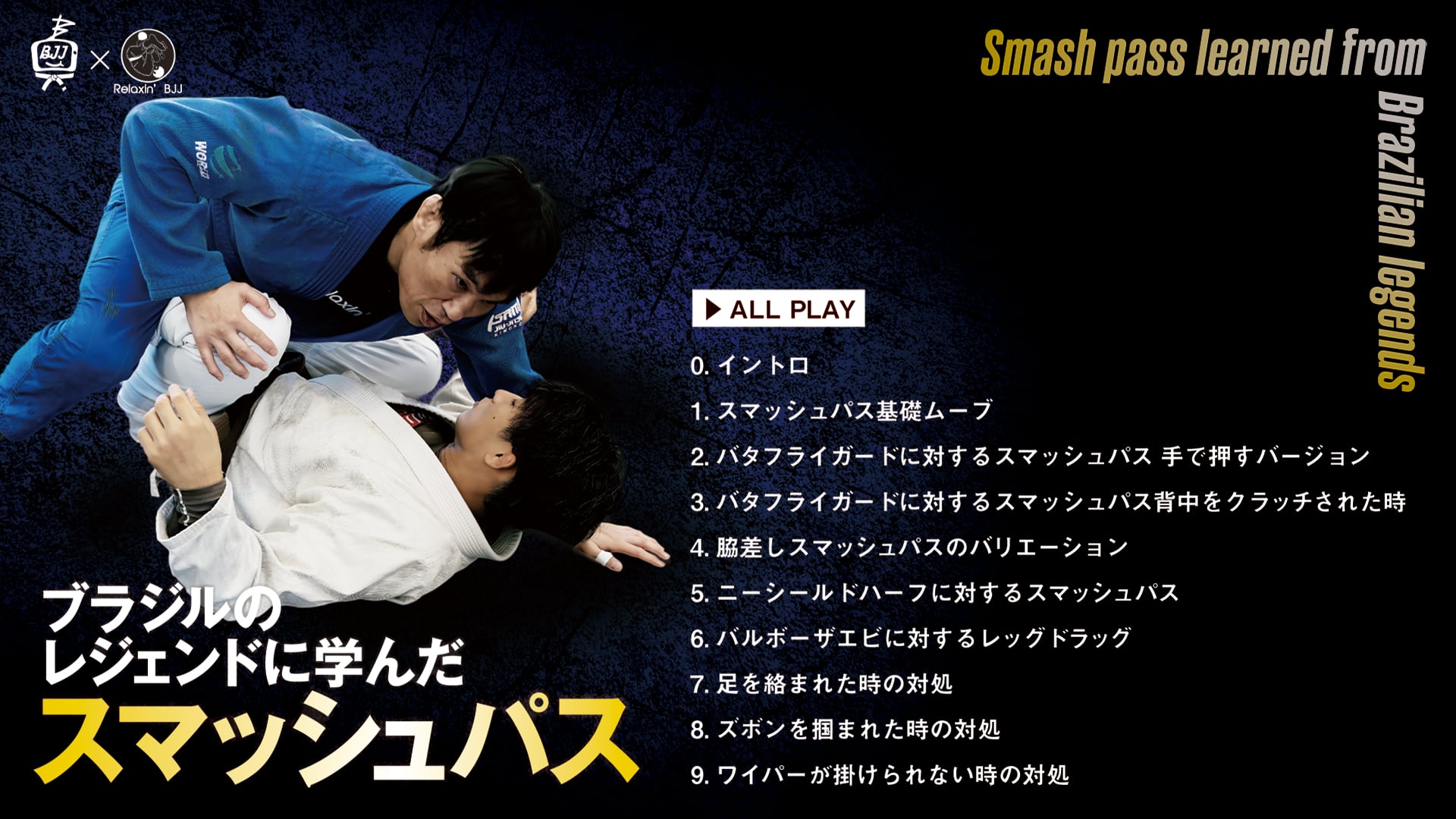 今回の教則では、ブラジルの名門バルボーザ道場で、ムリーロ・サンタナ、チアゴ・アウベスら世界トップ選手たちに浴びせられたスマッシュパスの技術を日本に持ち帰り、独自に研究・発展させた技術を徹底公開します。