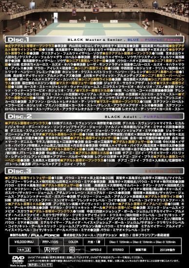 2012年10月13&14日の2日間に渡って開催されたアジア最大のビッグイベント、IBJJF主催・アジアオープン選手権大会2012が完全映像化!ハイレベルな攻防が会場を揺るがしたアダルト黒帯・茶帯をメインに、黒帯マスター&シニア、紫帯、女子の試合までもカバー!芝本幸司、金古一朗、中村大輔、加古拓渡ら日本トップ選手に加え、ミヤオ兄弟、イザッキ・パイヴァ、JTトーレスら海外勢が猛威を奮う!3ディスク・380分に31カテゴリ117試合を収録。